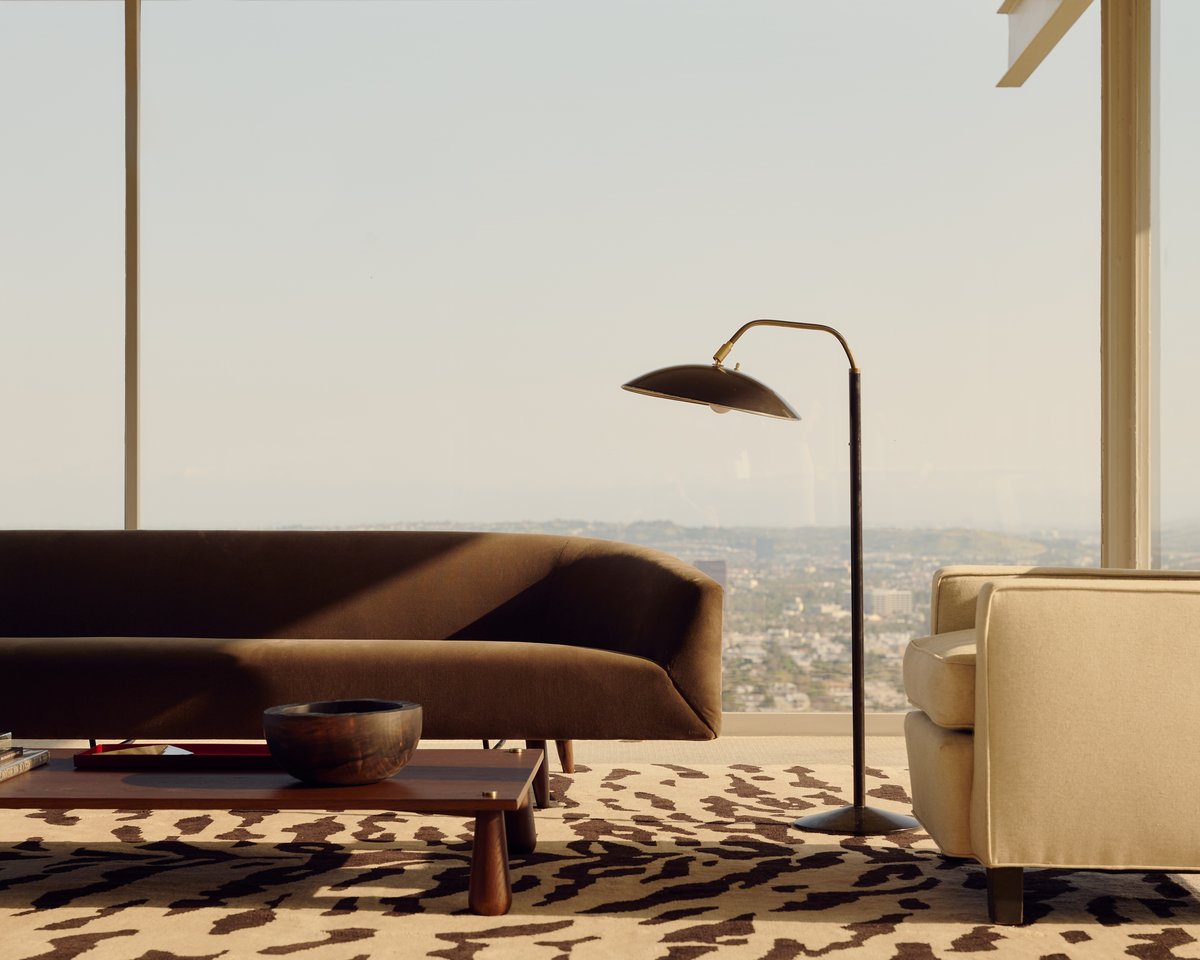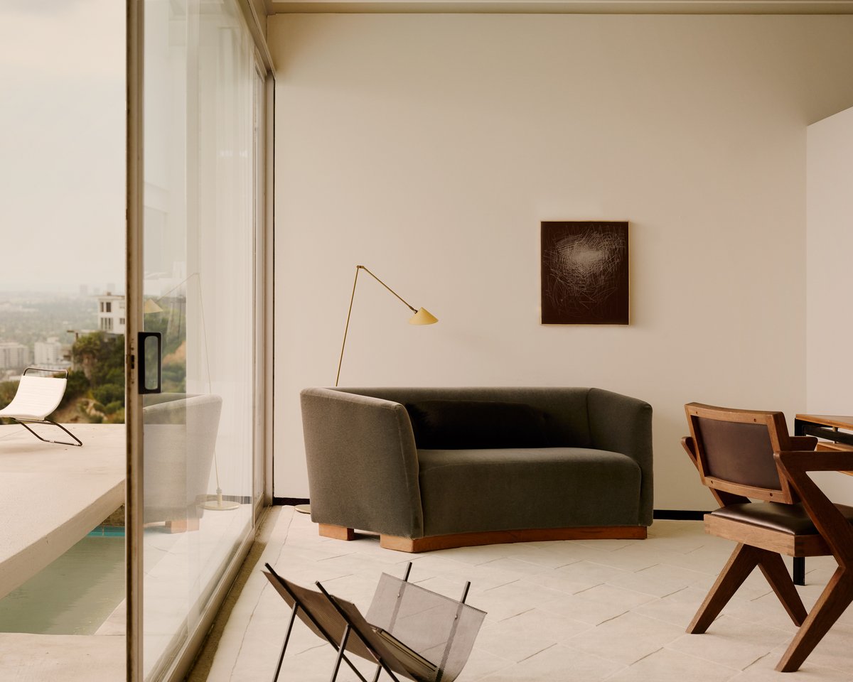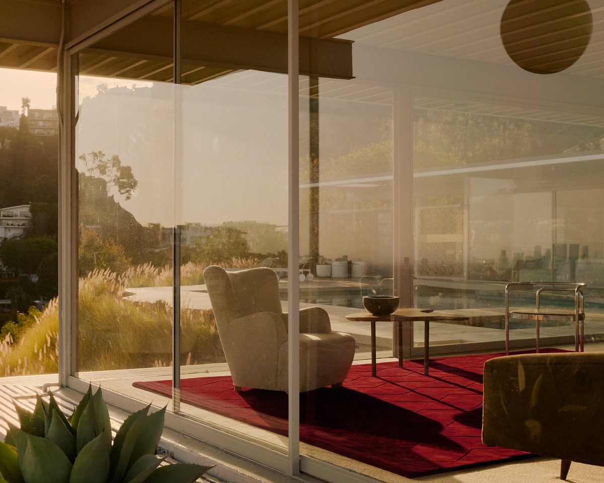 Modernismus aus der Mitte des Jahrhunderts, neu interpretiert durch eine zeitgenössische Linse. Eine mutige Interpretation zeitloser Animal-Prints, geometrischer Formen und tiefer Farbtöne. Entworfen für die Tase Gallery und fotografiert im ikonischen Stahl House in Los Angeles. Mit Jessie Andrews.
