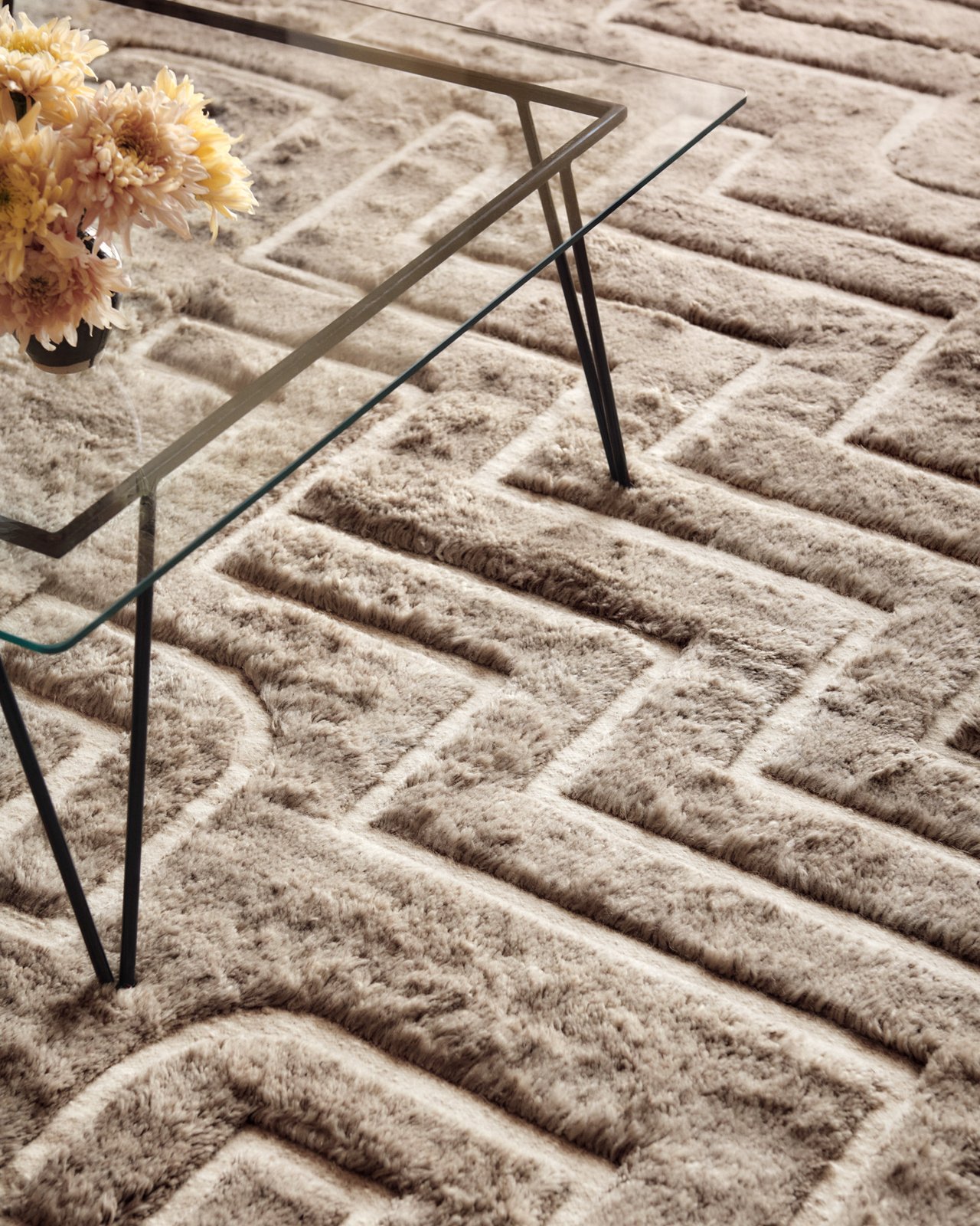 Duo-toned designs combine a shaggy pile of natural, un-dyed yarn with a flatweave base, creating beautiful depth and contrast. Soft, neutral shades highlight the organic materials and enhance the natural feel.