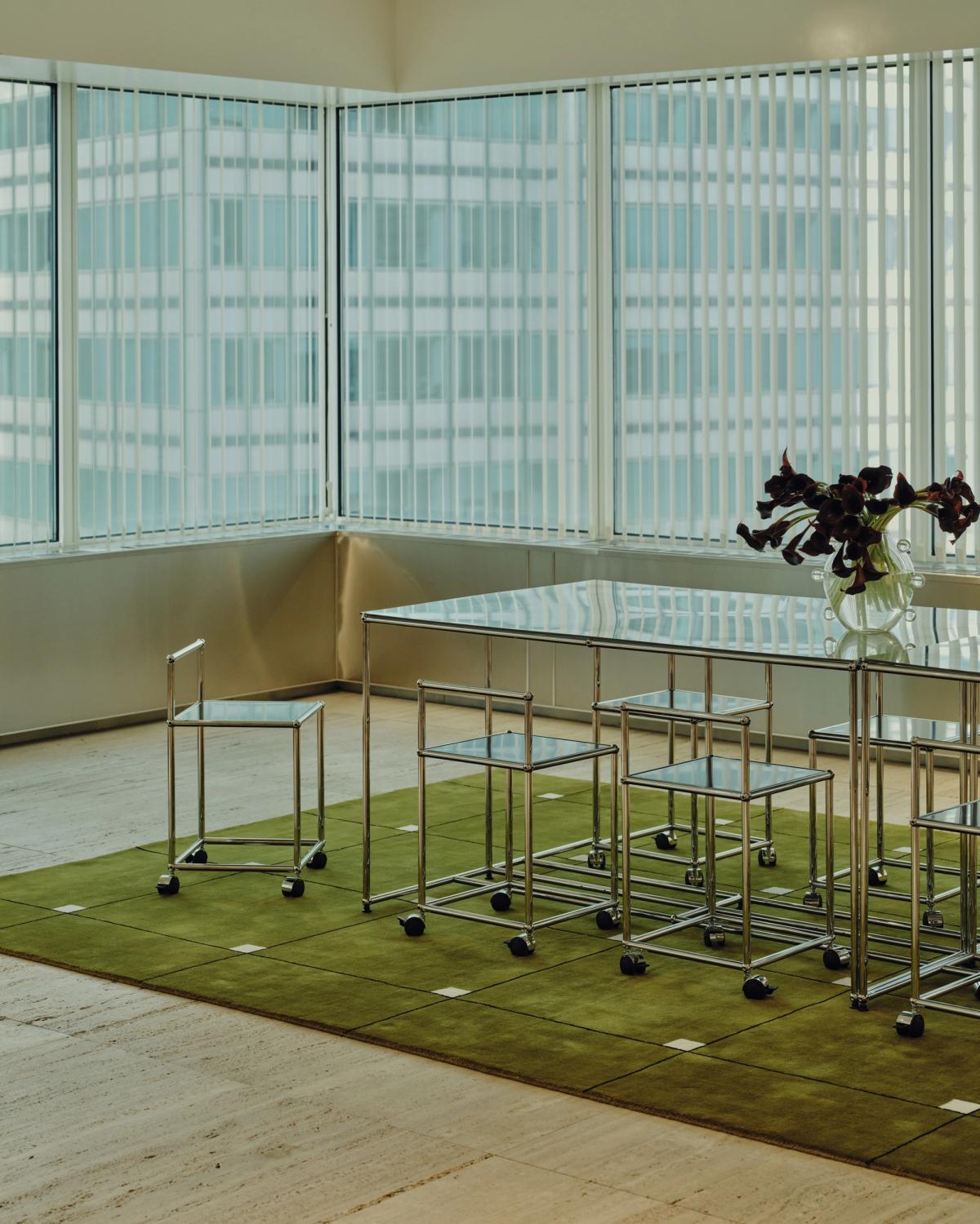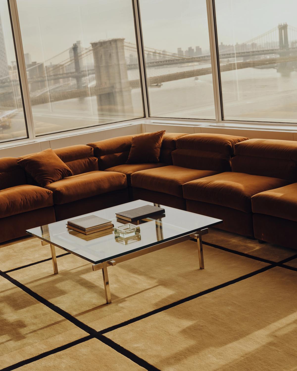 Exploring minimalism and modularity, GRAND VOLUMES reimagines the plush Grand collection of rugs and curtains as functional, three-dimensional forms. Presented as an immersive exhibition in collaboration with creative director Alexander May, the NYC flagship transforms into a sculptural landscape of upholstered volumes wrapped in the new Grand Butter colorway.