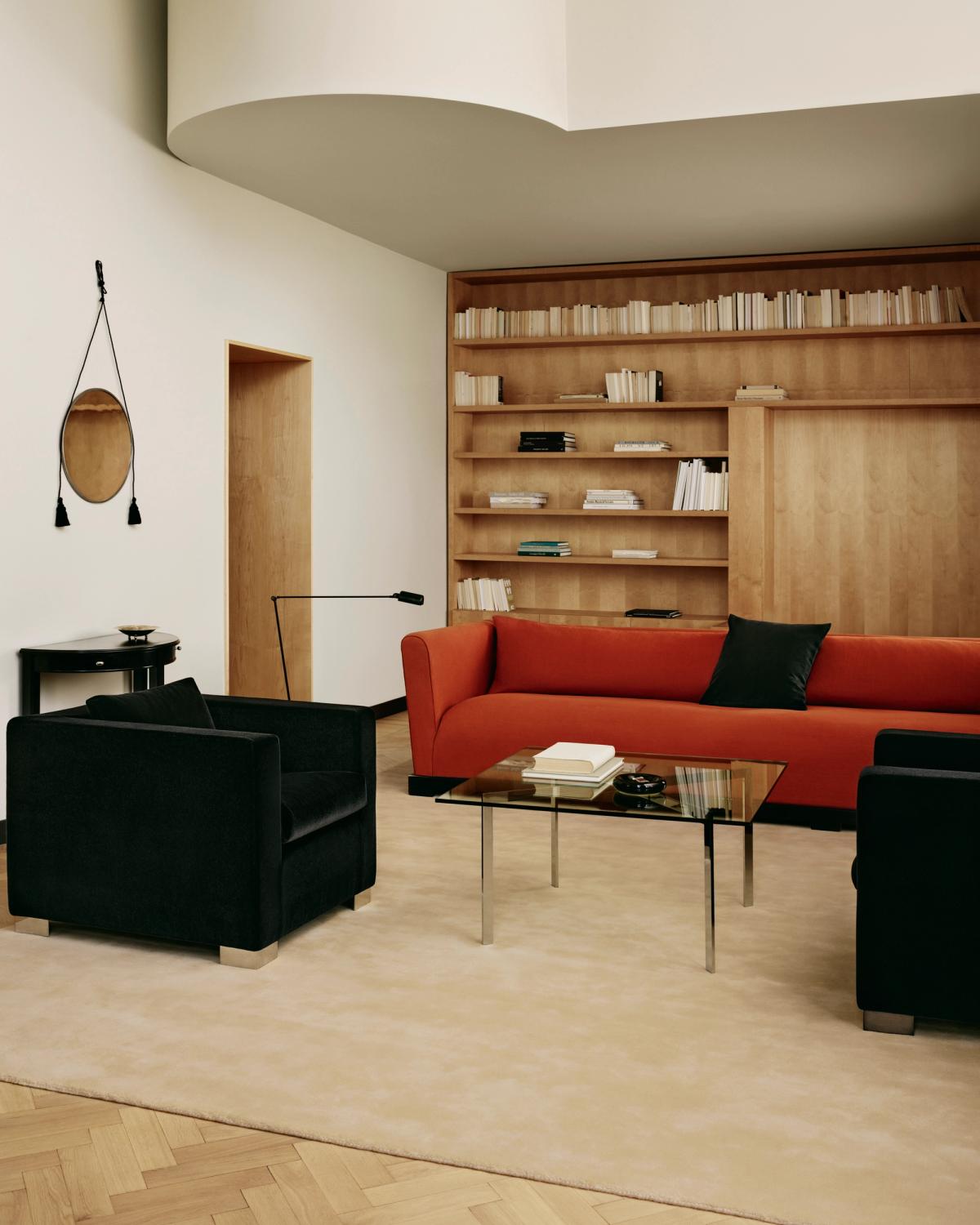 Yet, alongside this warmth, bold patterns emerge. Architectural angles sharpen its edges, inspired by the clarity of early modernism. Softened by a velvety touch that invites comfort, it translates modernist codes into something much more intimate.