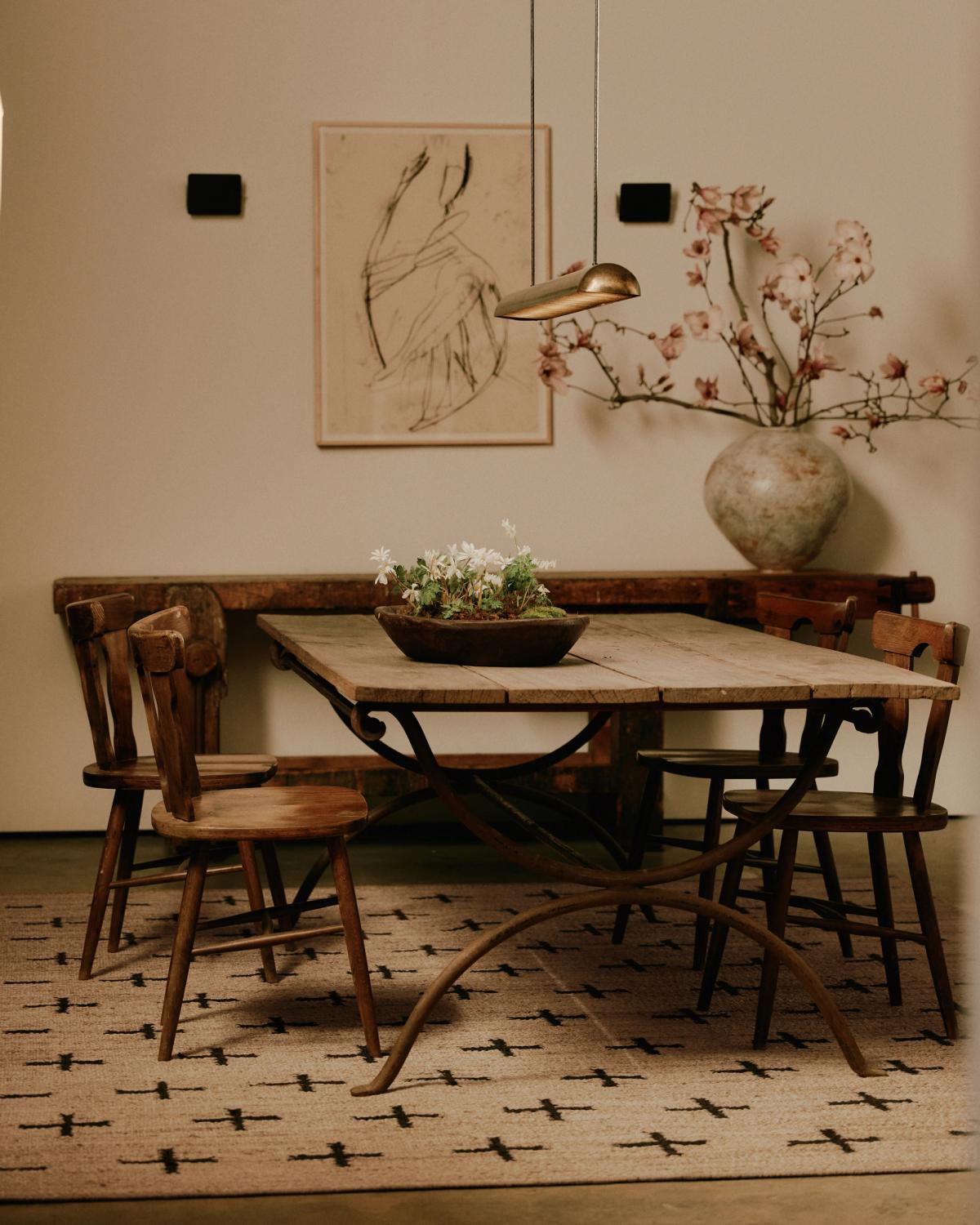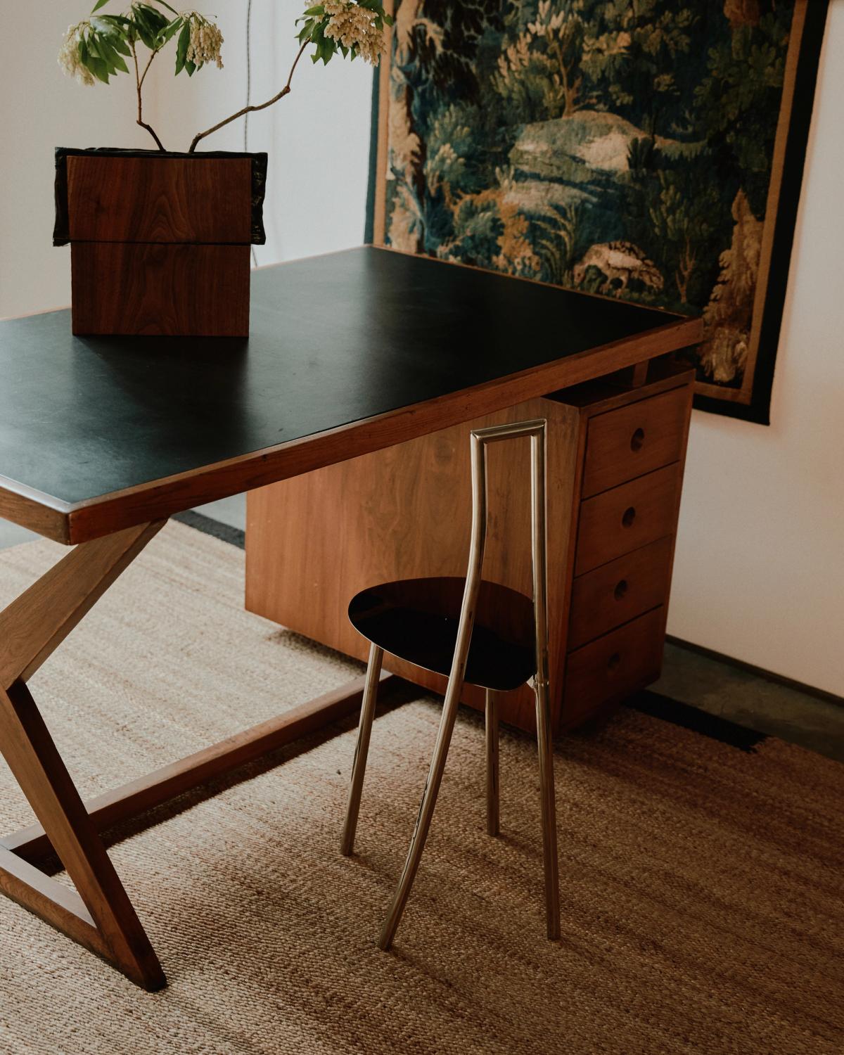 The collection was beautifully set against Galerie Was’s vintage design gems in New York, seamlessly blending with patinated tables, wooden chairs, and cozy armchairs. A harmonious fusion captured through William Jess Laird’s lens.