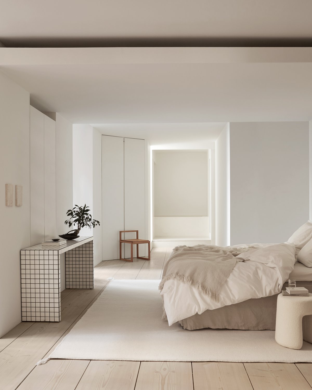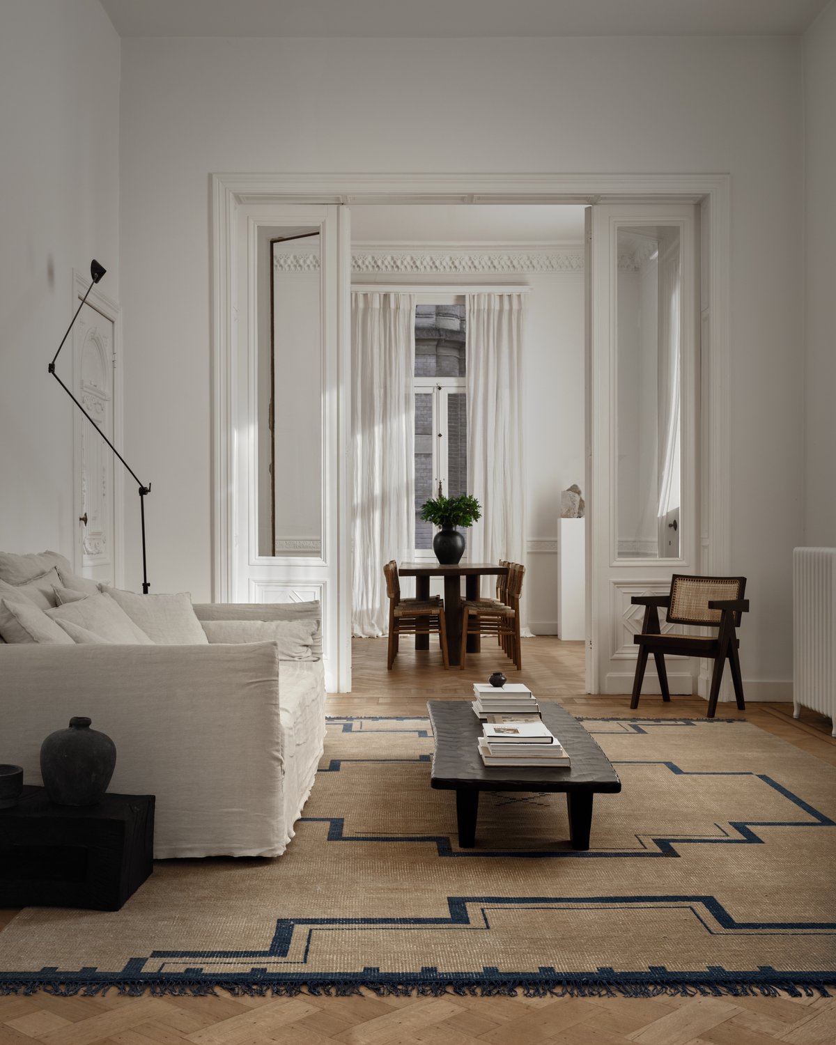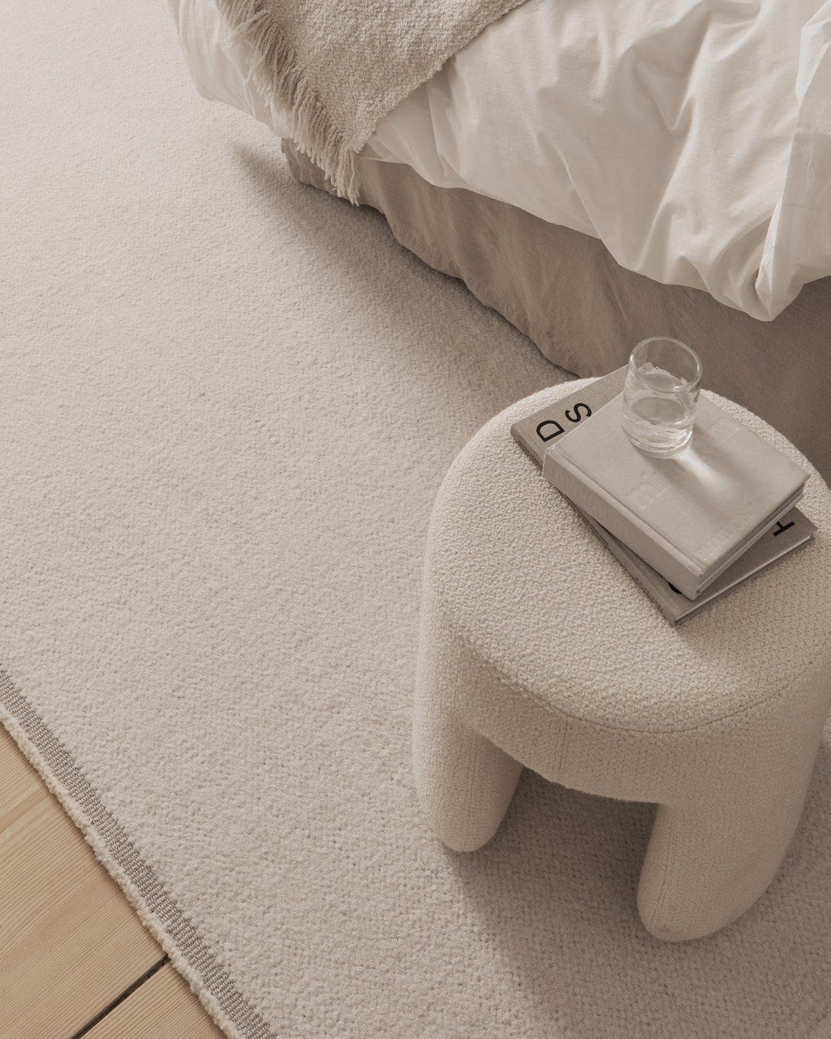 C'est l'interaction complexe des matériaux, unissant des boucles de jute durables et des poils de lin, qui donne à Twin 01 sa texture saisissante. Un tissage beige riche et chaud souligné par des lignes verticales et encadré par une reliure contrastée noire, s'appuyant sur les détails raffinés de techniques artisanales pour contrebalancer les éléments plus élégants d'une maison moderne.