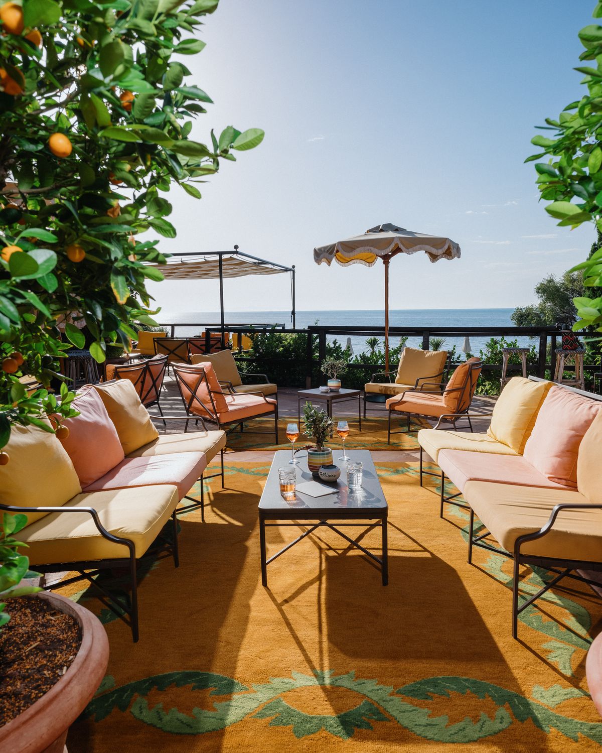 Conçu par Campbell-Rey pour ISSIMO à l'hôtel Il Pellicano. Une collection limitée créée pour capturer l'esprit de la dolce vita italienne qui est synonyme de cet hôtel emblématique. Inspirée par les riches teintes de terre cuite des bâtiments de l'hôtel, ainsi que par les verts luxuriants des buissons de romarin ondulant dans les jardins environnants.