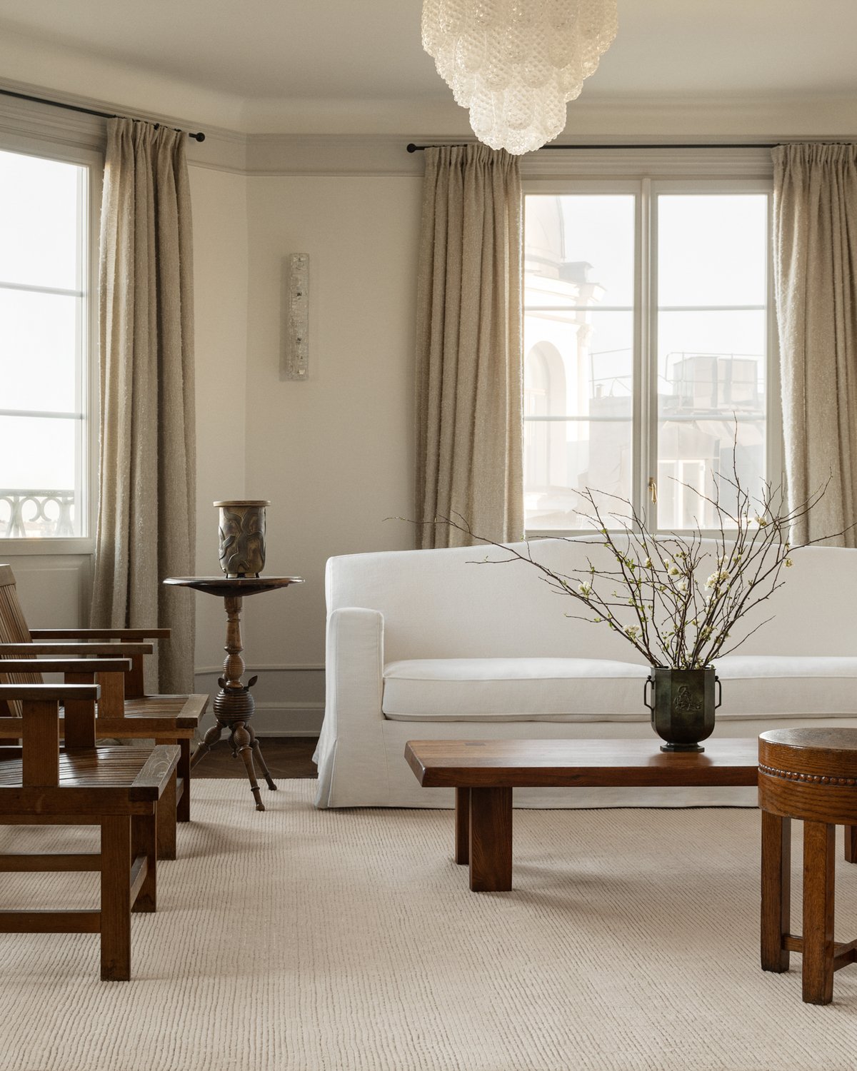 Fullända rummet med gardiner som samspelar naturligt – i mjuka vita nyanser och sandtoner. Från skirt linne till ljusfiltrerande ull som tillför värme, textur och ett diskret elegant uttryck