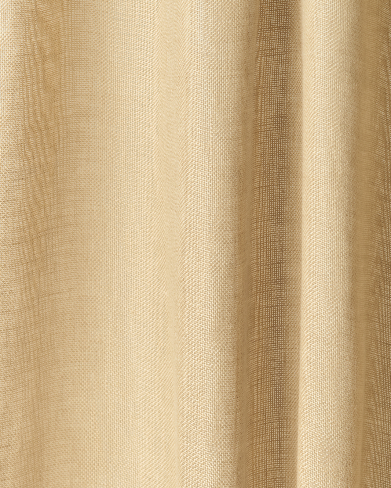 The Grand in Pale Sand, photographed in a room with warm accents. Soft light filters through the drawn fabric, bringing out its beautiful texture.