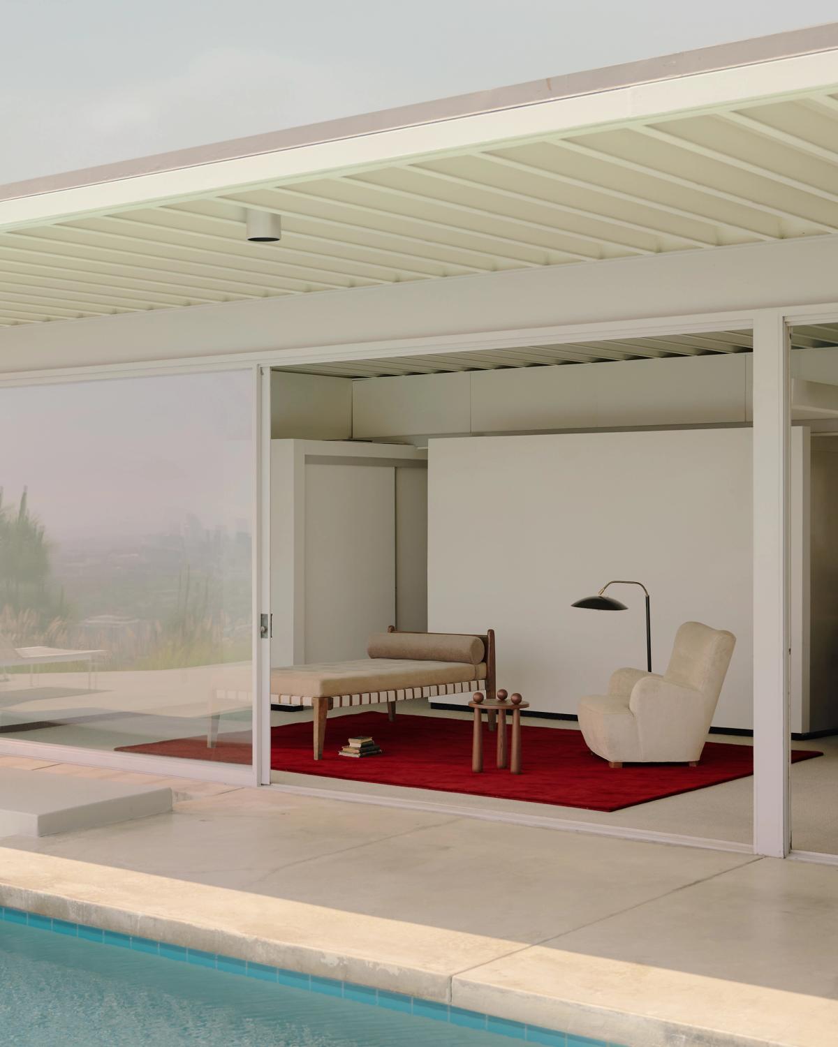 Mid-century modernist reimagined through a contemporary lens. A bold take on timeless animal prints, geometric shapes and deep hues. Designed for Tase Gallery and photographed at the iconic Stahl House, Los Angeles. Featuring Jessie Andrews.