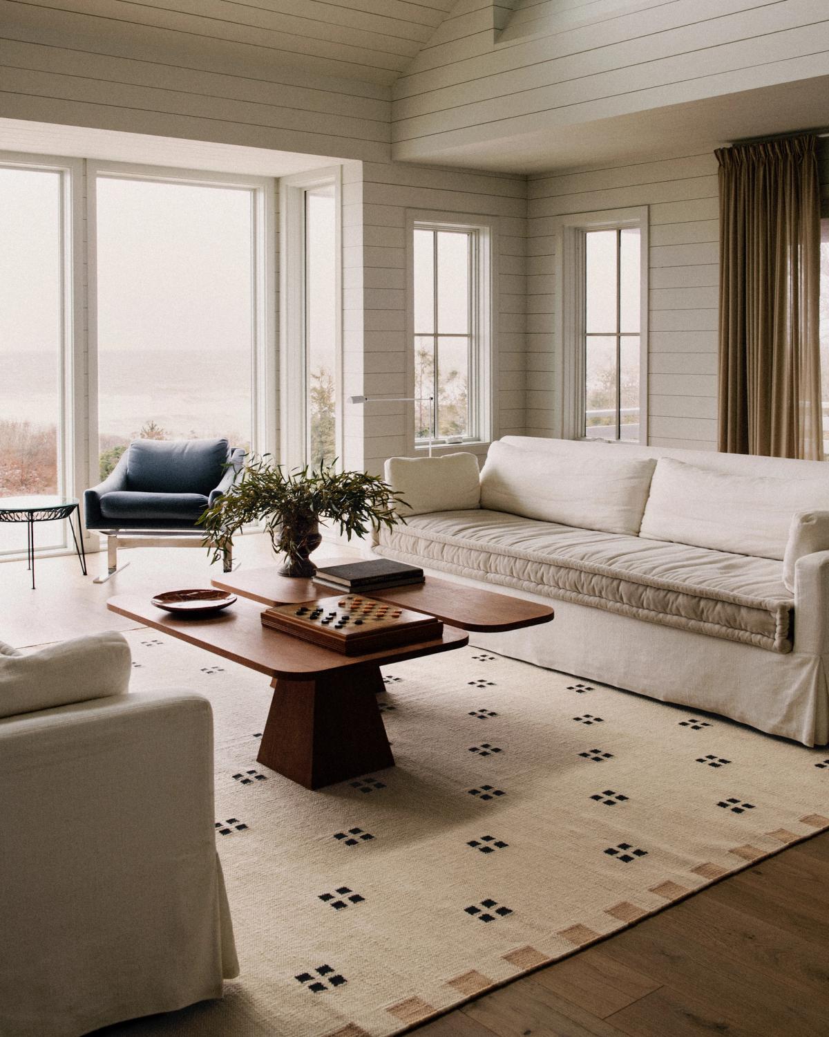 Here a rug settles into the space like it belongs, textured yet sleek, understated yet full of depth. The waves whisper, the wind shifts, and the room feels like a natural extension of the landscape — timeless, grounding, at ease.