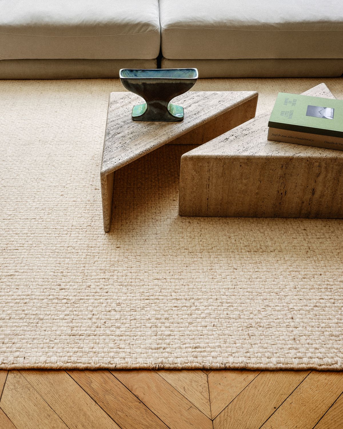 Zero Basket is crafted without dye—uncoloured—celebrating the natural quality and characteristics of wool in its purest form. The classic basket-woven design not only highlights the rich texture but also makes the rug soft and inviting. Elegantly outlined by a dark contrast binding, and available in three different shades.